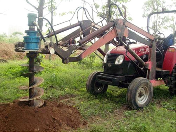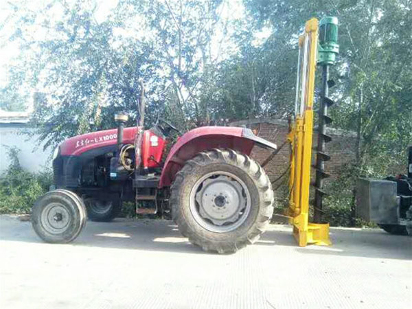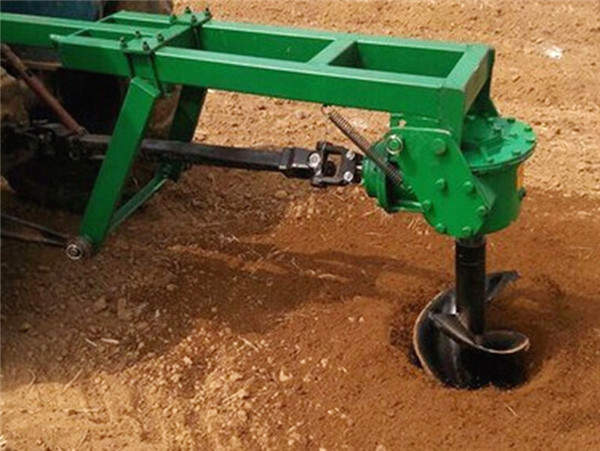 操作:拖拉機(jī)液壓起落裝置控制鉆桿提鉆;拖拉機(jī)行走對(duì)準(zhǔn)坑穴;拖拉機(jī)動(dòng)力輸出軸輸出旋轉(zhuǎn)動(dòng)力。