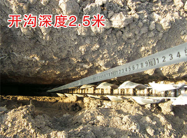 開(kāi)溝寬度:上寬70cm-90cm,下寬40cm-60cm,深度30cm-50cm。開(kāi)溝速度800m-1200m/h。